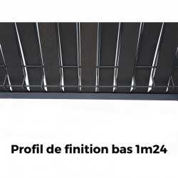 Nos profils de finition sont proposés en longueur de 1m24 et en 4 coloris : Noir RAL 9005, Gris RAL 7016, Vert RAL 6005, Teck